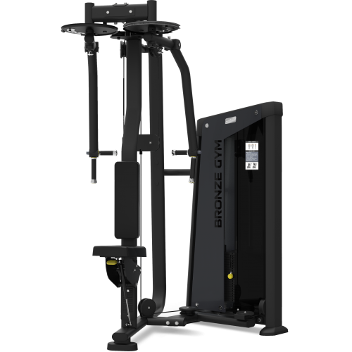 BRONZE GYM NEO 07- профессиональный тренажер коммерческого класса для жима от груди и упражнений на заднюю дельту. C его помощью пользователь сможет проработать грудные мышцы и дельтовидные мышцы. Профиль рамы тренажера, размером 100*50, выполнен из высокопрочной стали толщиной 3 мм. Благодаря двухслойному порошковому покрытию, обеспечивается защита корпуса от внешних повреждений на 98%. Прорезиненные, нескользящие рукоятки модели обеспечивают надежное сцепление рук пользователя во время занятий, что избавляет от риска получения травм. Стальной трос в ПВХ оболочке, общим диаметром 6 мм, отвечает за подъем стека, общий вес которого составляет 100 кг. Сами плиты стека изготовлены из прочной легированной стали. Для простоты использования, все фиксаторы на тренажере выполнены в ярких цветах*. Установленное на модели эргономичное сиденье из высокопрочной экокожи гарантирует повышенный комфорт на протяжении всей тренировки. Подушки с полиуретановым наполнителем максимально смягчают давление на ноги. Фиксатор для ног регулируется по вертикали. В качестве дополнения BRONZE GYM NEO 07 оснащен держателем для бутылки с водой.