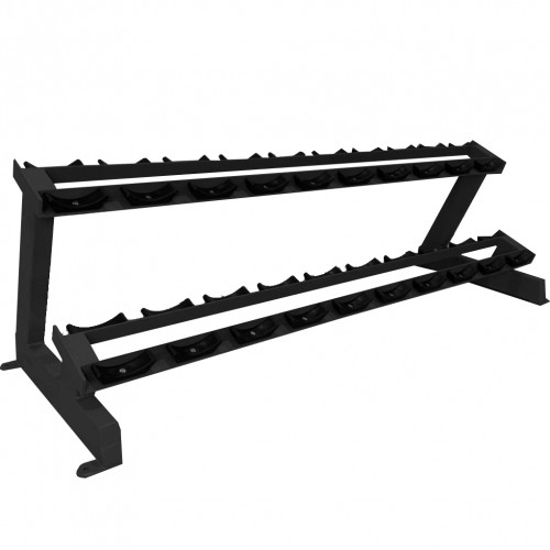 BRONZE GYM AL-402 - коммерческая стойка для гантелей. Каркас оборудования выполнен из профиля 50*100 мм прямоугольного сечения толщиной 2,5 мм. Имеет 20 секций для размещения гантелей. Размер стойки 200*65*75 см.