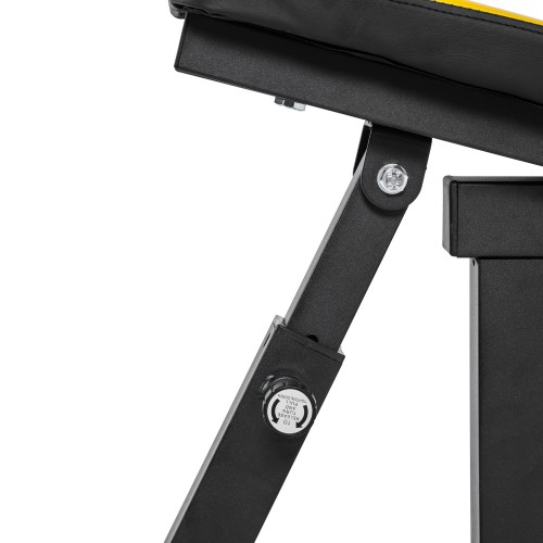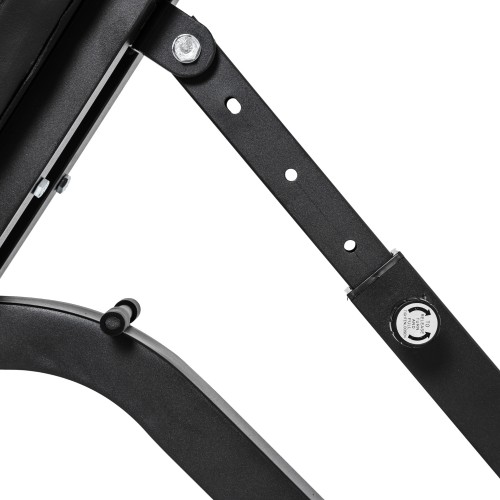 Сиденье и спинка скамьи регулируется по углу наклона в широком диапазоне. Фиксация в нужном положении с помощью удобной подпружиненной ручки.