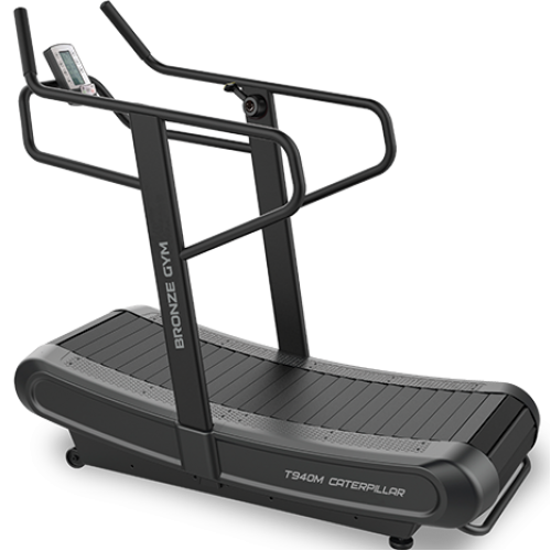 Беговая дорожка BRONZE GYM T940M CATERPILLAR относится к новому, набирающему популярность типу беговых дорожек с гусеничным беговым полотном и с вогнутой формой поверхности. Такой тип отличается от классического по нескольким параметрам. Пожалуй, наиболее существенное отличие состоит в том, что пользователь может передвигаться на любых доступных для него скоростях без всяких ограничений, самостоятельно регулируя скорость самого полотна. Если в классических беговых дорожках полотно приводится в действие электромотором и тренирующийся следует за установленной на консоли скоростью, в случае T940M CATERPILLAR сам пользователь "ногами" определяет скорость движения полотна, по сути самостоятельно выступая в роли двигателя дорожки. Отсюда вытекает ряд практических преимуществ. Во-первых, за счет необходимости ногами расталкивать полотно, существенно увеличивается общая нагрузка на организм (как следствие, количество потраченных калорий).