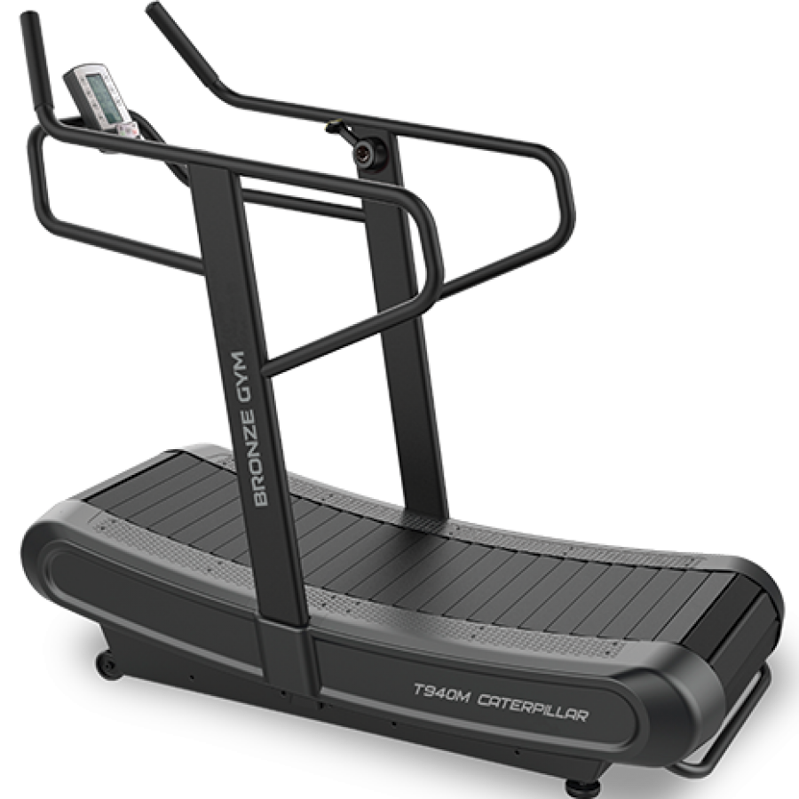 Беговая дорожка BRONZE GYM T940M CATERPILLAR относится к новому, набирающему популярность типу беговых дорожек с гусеничным беговым полотном и с вогнутой формой поверхности. Такой тип отличается от классического по нескольким параметрам. Пожалуй, наиболее существенное отличие состоит в том, что пользователь может передвигаться на любых доступных для него скоростях без всяких ограничений, самостоятельно регулируя скорость самого полотна. Если в классических беговых дорожках полотно приводится в действие электромотором и тренирующийся следует за установленной на консоли скоростью, в случае T940M CATERPILLAR сам пользователь "ногами" определяет скорость движения полотна, по сути самостоятельно выступая в роли двигателя дорожки. Отсюда вытекает ряд практических преимуществ. Во-первых, за счет необходимости ногами расталкивать полотно, существенно увеличивается общая нагрузка на организм (как следствие, количество потраченных калорий).