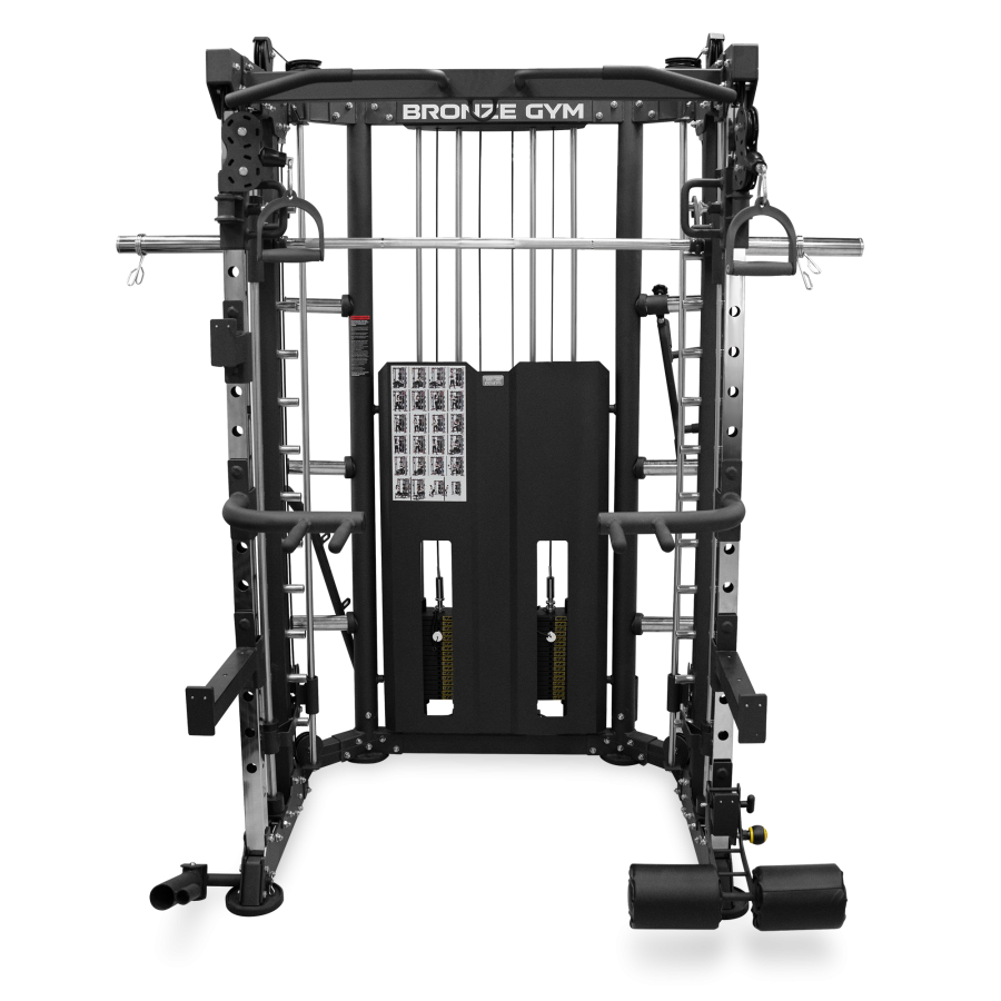 | Дополнительно | Силовая рама Машина Смитта с противовесом Многопозиционный турник Многопозиционные брусья Двойная регулируемая тяга Шарнирный крепеж грифа Страховочные упоры |