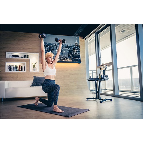 | Особенности | Поворотный механизм изменения веса; шестигранная форма пластин |