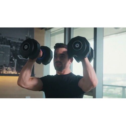 | Особенности | Поворотный механизм изменения веса; шестигранная форма пластин |