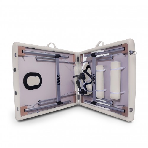 Портативный массажный стол UNIX Master 2 Section разработан специально для профессионалов и любителей массажа, он предоставляет широкий спектр возможностей для проведения оздоровительных и бьюти процедур. Благодаря своей конструкции, кушетка для массажа легко трансформируется в компактный чемоданчик, который удобно брать с собой. Это идеальный выбор для тех, кто ценит мобильность и хочет иметь возможность проводить сеансы массажа вне салона. Этот складной стол - воплощение гармонии природы и современных технологий. Продуманная конструкция модели обеспечит максимальный комфорт клиенту во время массажа спины, шеи и ног. В спинке есть удобное анатомическое отверстие для лица.
