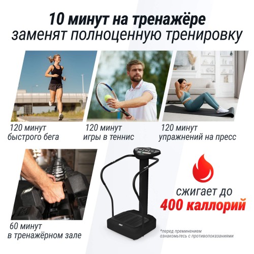 Не требуется специальных знаний или подготовки — просто включите платформу для фитнеса, выберите режим и начните тренироваться! Подходит для всех возрастных групп и уровней физической подготовки!