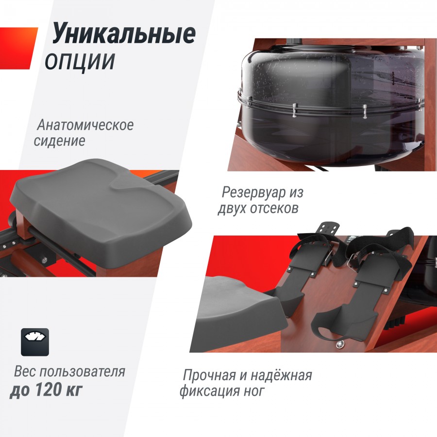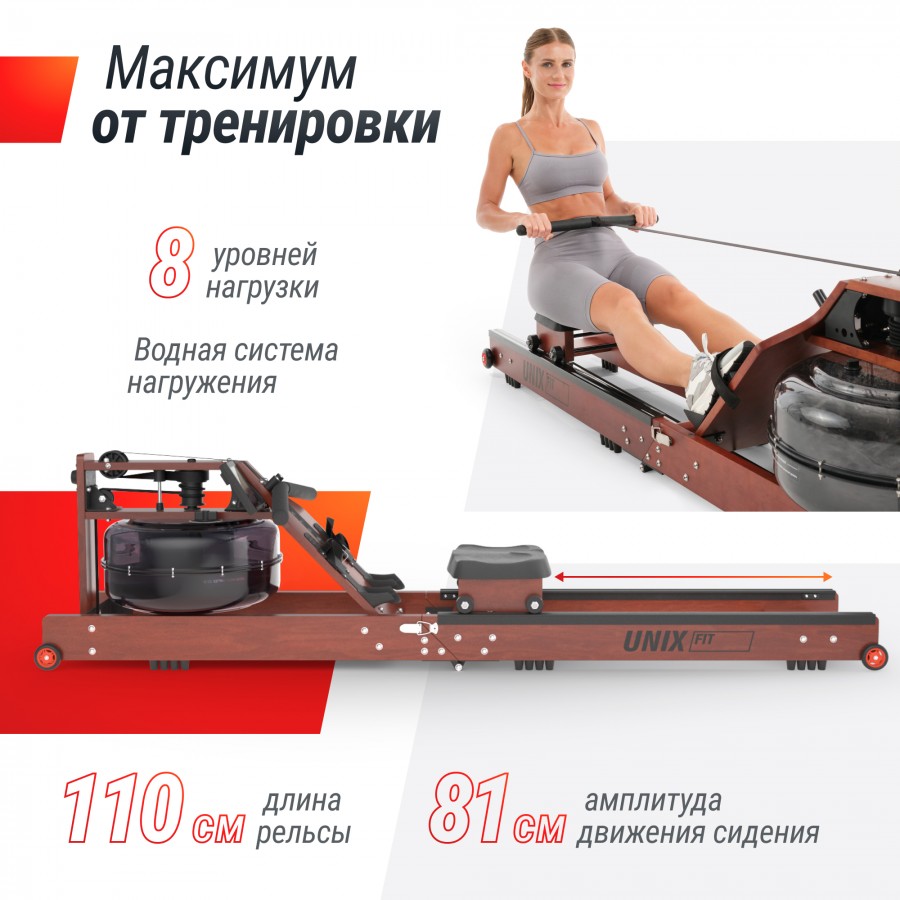 Гребной тренажер UNIX Fit тёмное дерево / Wood Rower Dark
