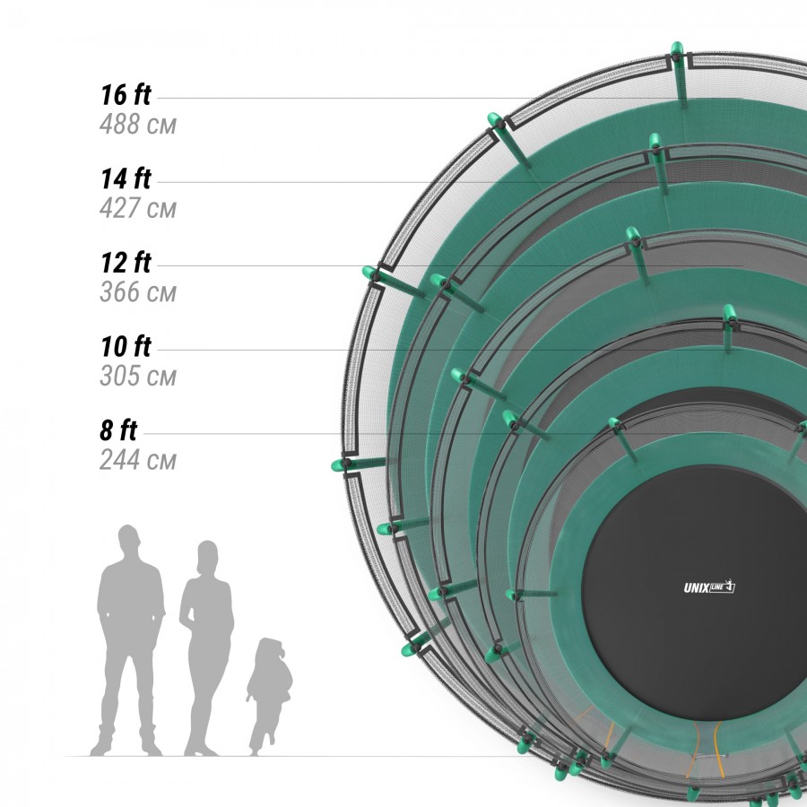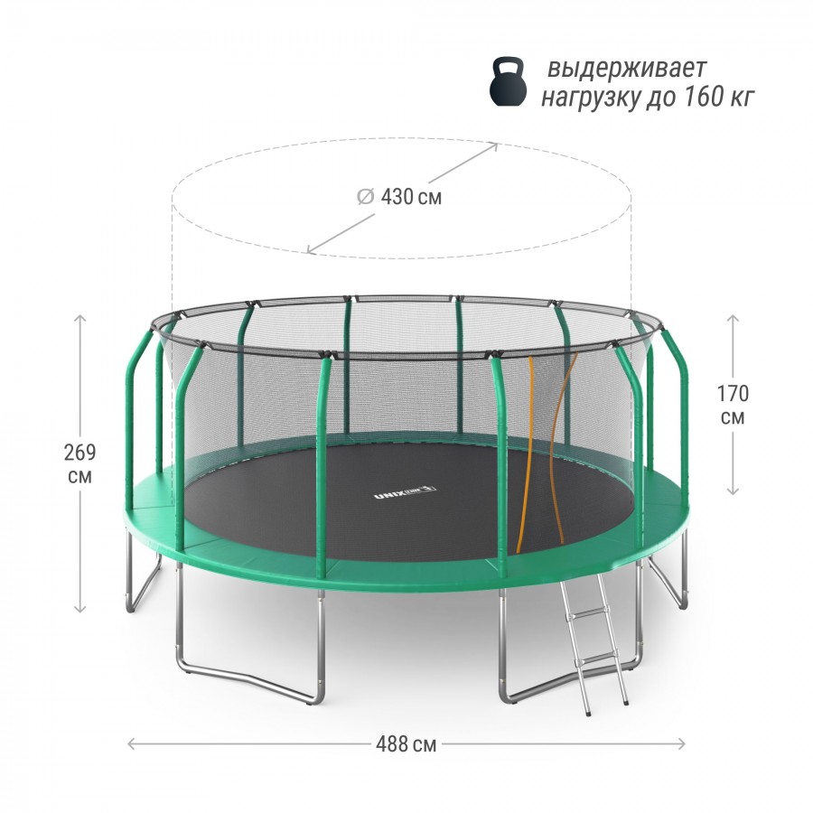 Батут UNIX Line Премиальный / Supreme Basic 16 ft (488 см) зеленый