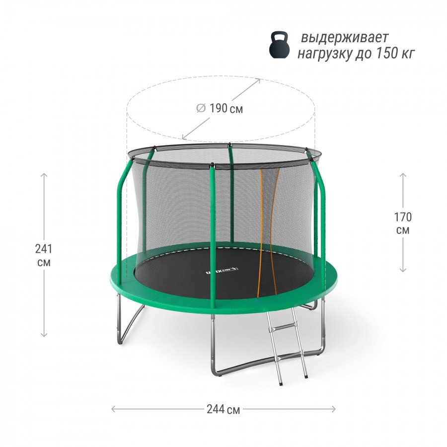 Батут UNIX Line Премиальный / Supreme Basic 8 ft (244 см) зеленый