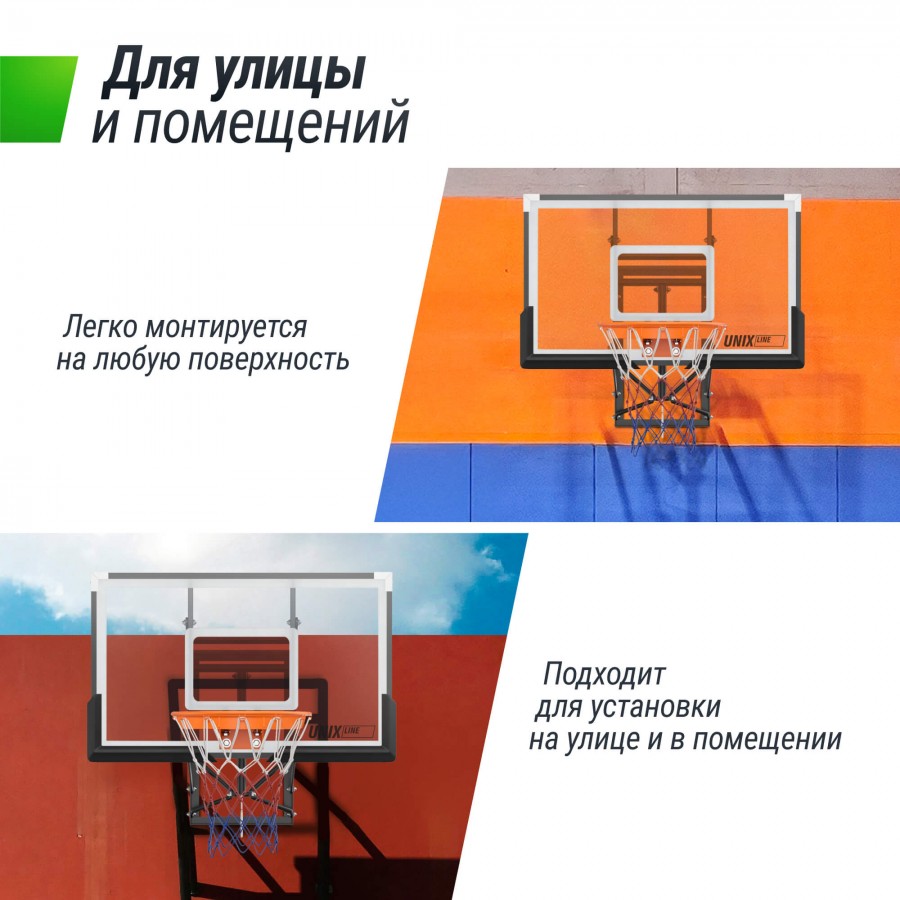 Баскетбольный щит регулируемый UNIX Line B-Backboard-PC 50"x32" (140 х 80 см) R45