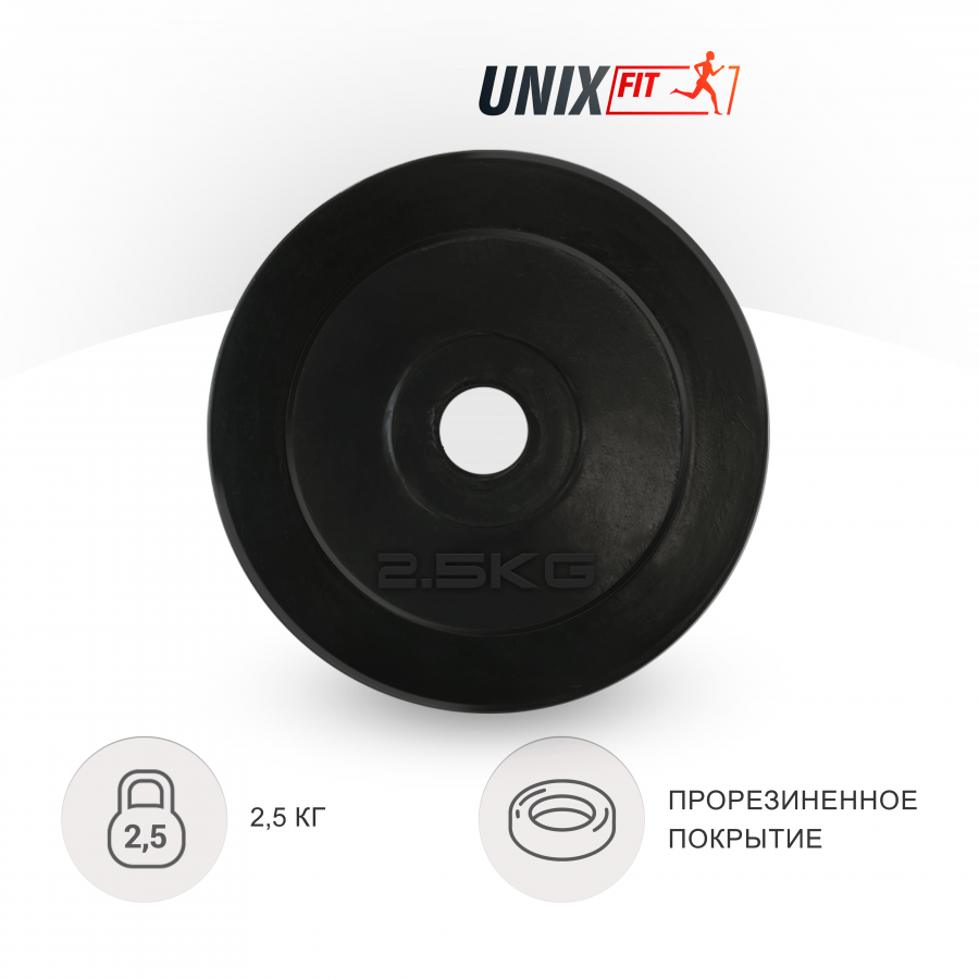 Диск обрезиненный UNIX Fit 2.5 кг, 25 мм
