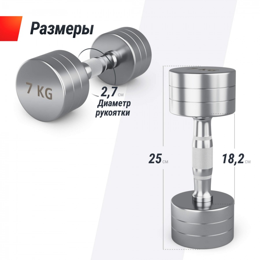 Гантель UNIX Fit PRO круглая хромированная 7 кг, 2 шт.