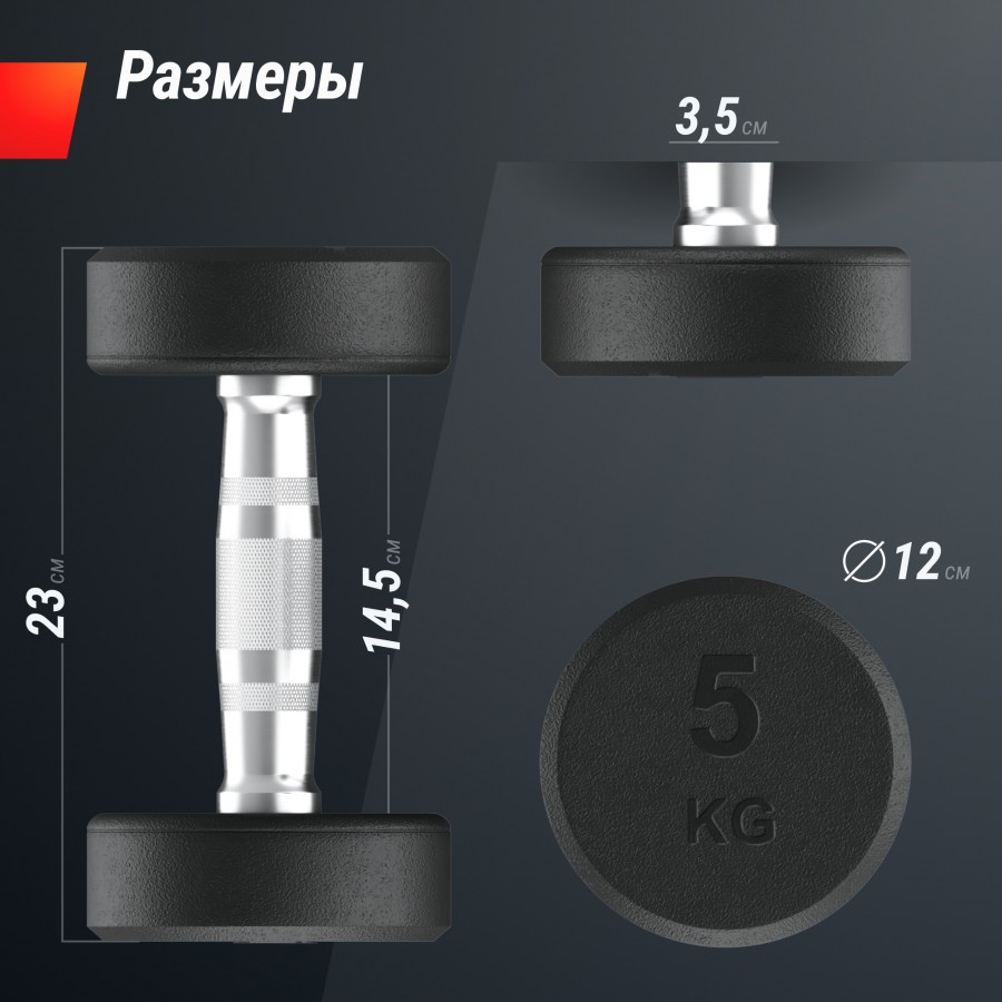 Гантель UNIX Fit PRO круглая обрезиненная 5 кг, 2 шт.