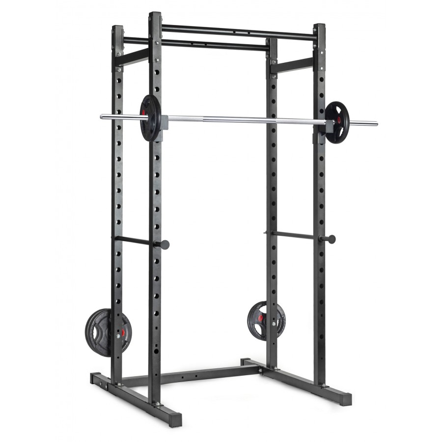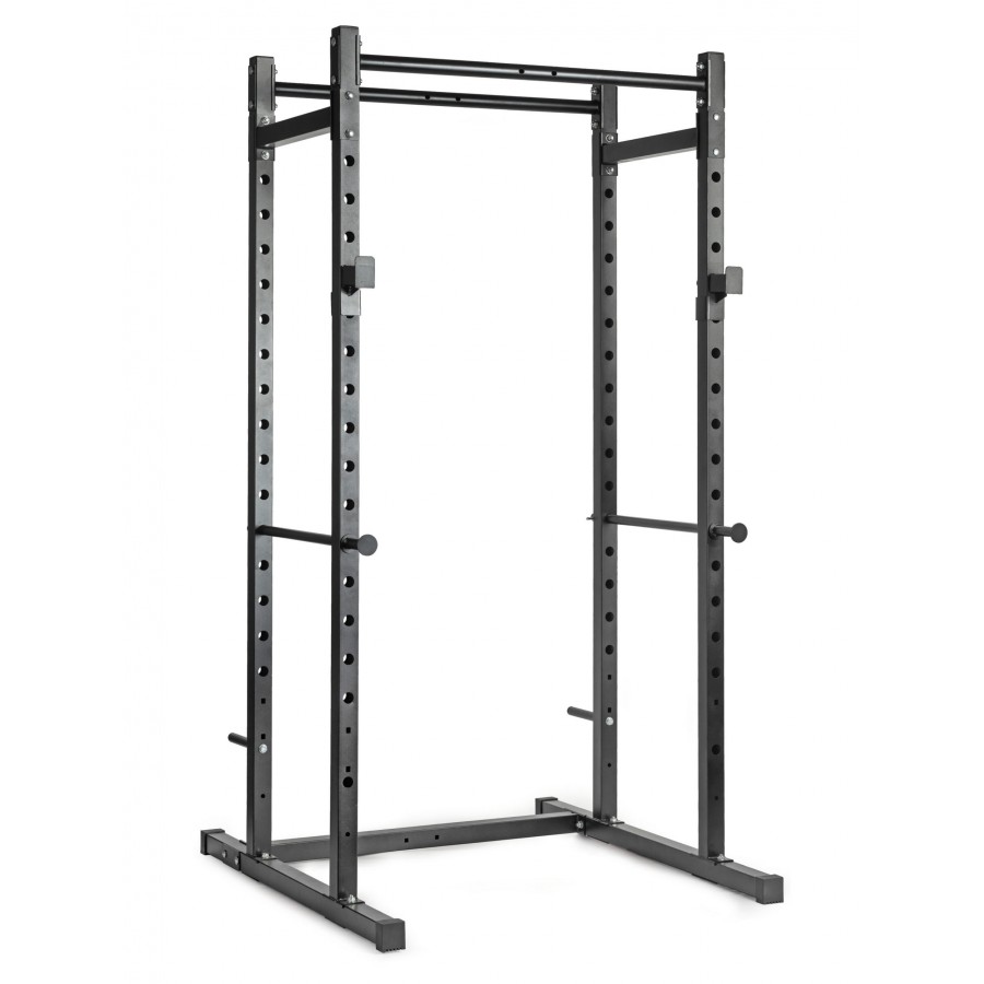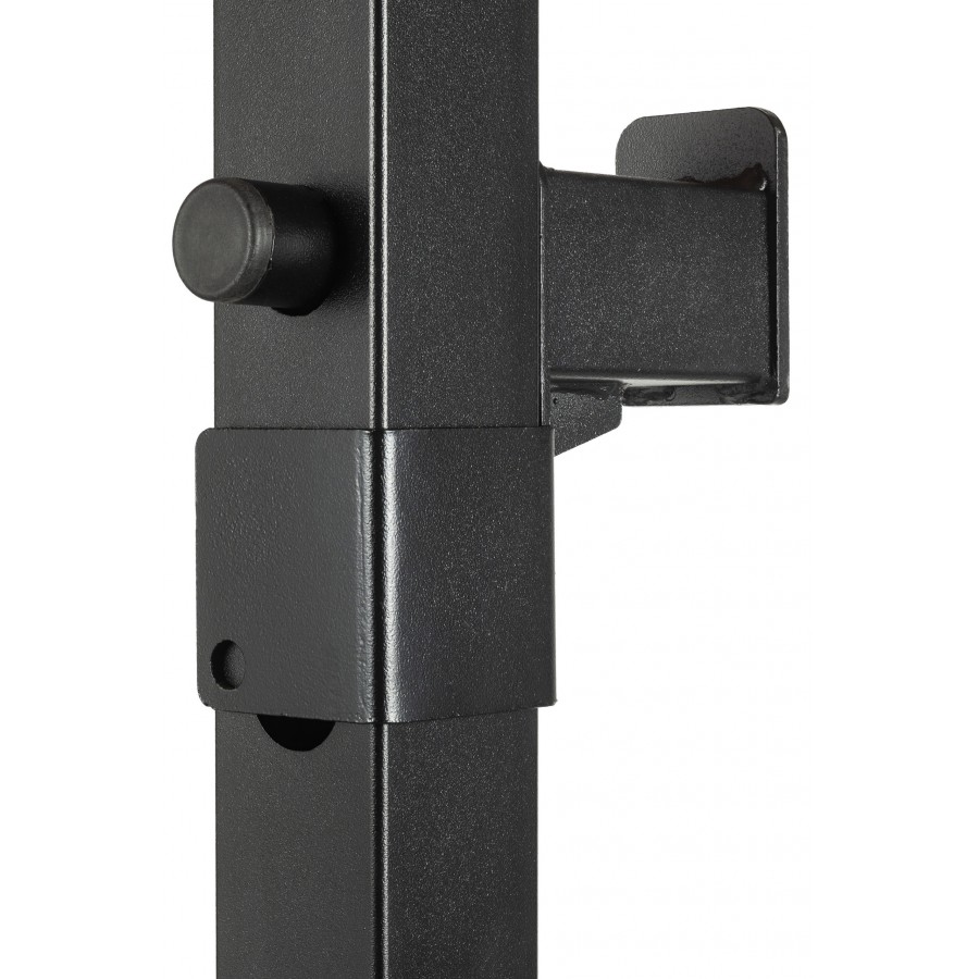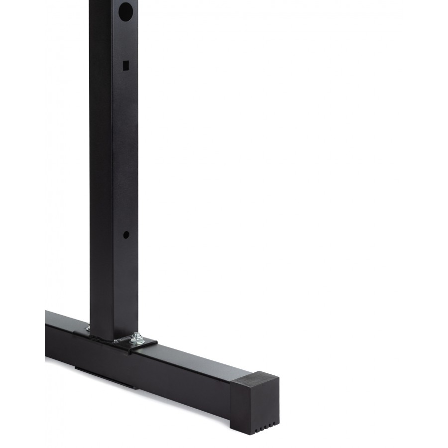 Регулируемые J-образные крюки для штанги с шагом 10 см, позволяющие настроить высоту под любой рост.