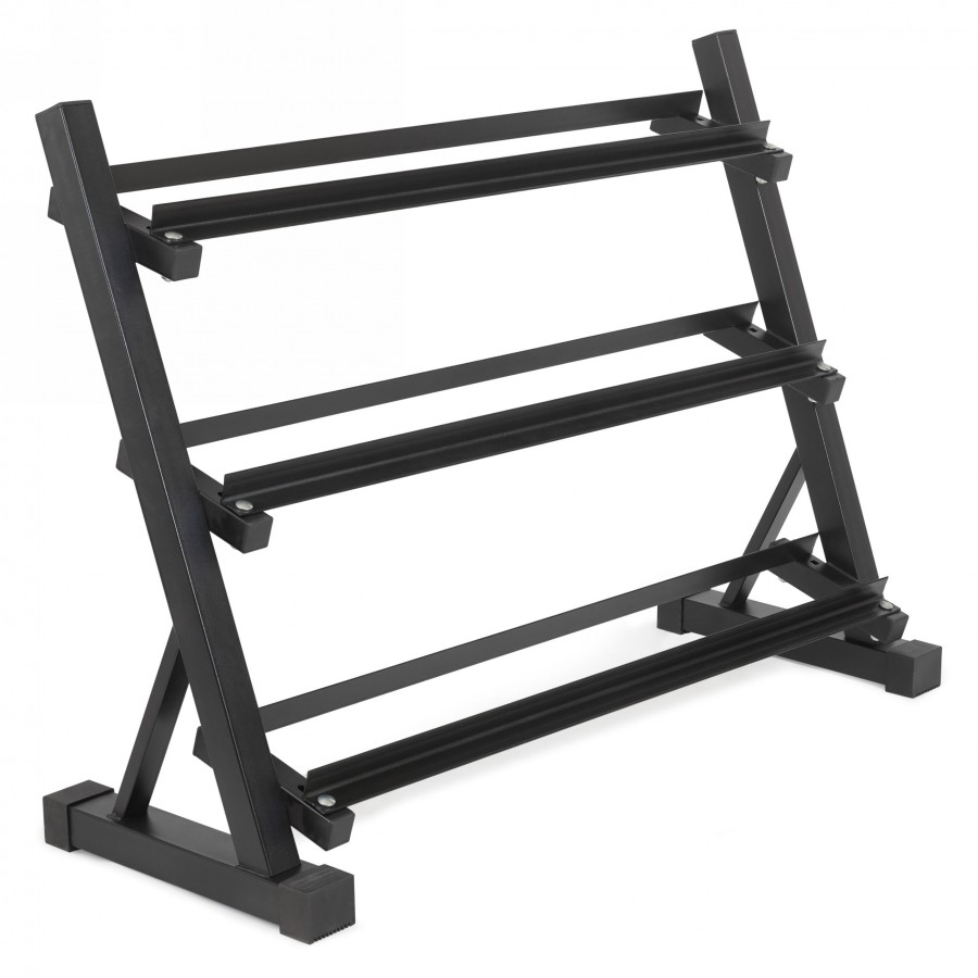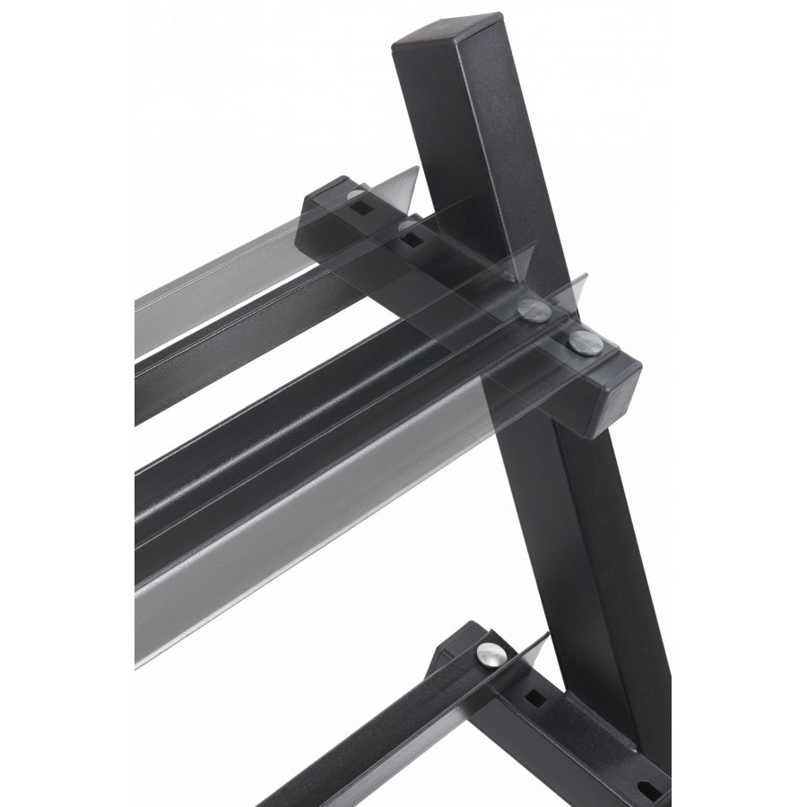 Удлинённая конструкция(127×46×93 см) позволяет разместить большое количество гантелей разного веса.